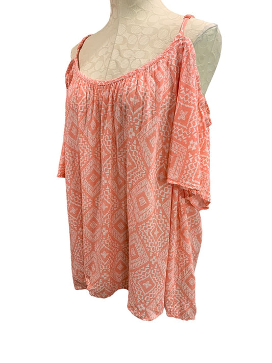 3X Torrid Coral Print Cold Shoulder Peasant Blouse Boho Womens Shirt