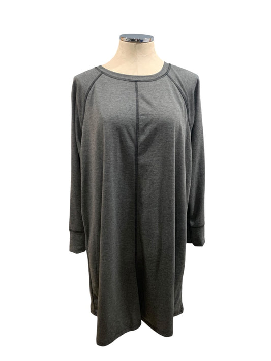 2X Bobbie Brooks Gray Jersey Knit Pullover Dress Lace Detail Reverse Stitch Long Sleeve