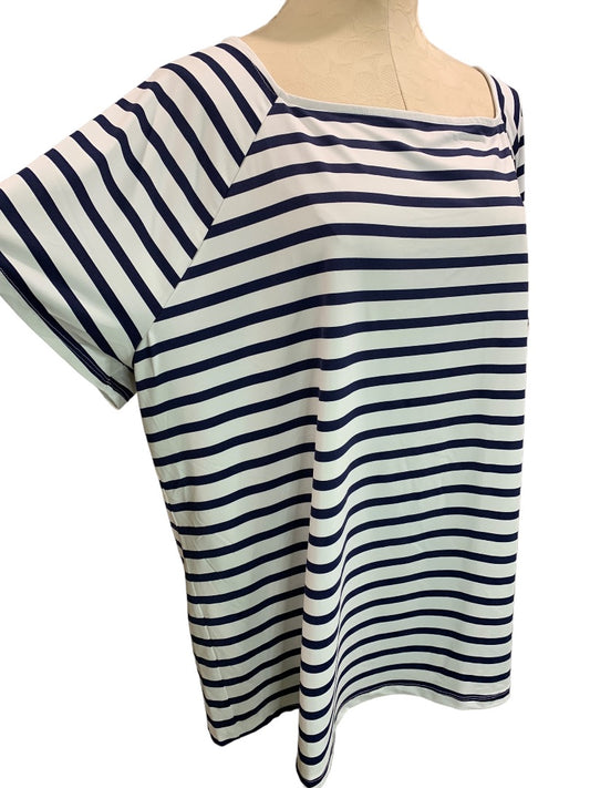 3X Talbots Womens Navy Blue White Stripe Square Neck Short Sleeve Pullover Stretch Fabric