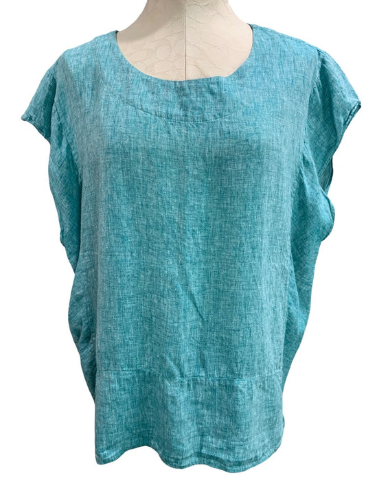 2X Vivid Womens Turquoise Linen Pullover Top Sleeveless Blouse Plus Size