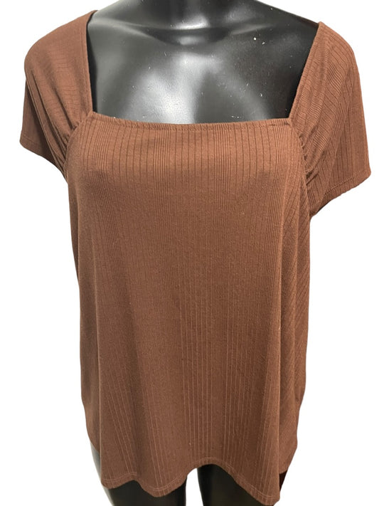 18/20 Lane Bryant Womens Plus Size Square Neckline Cap Sleeve Ribbed Top Brown