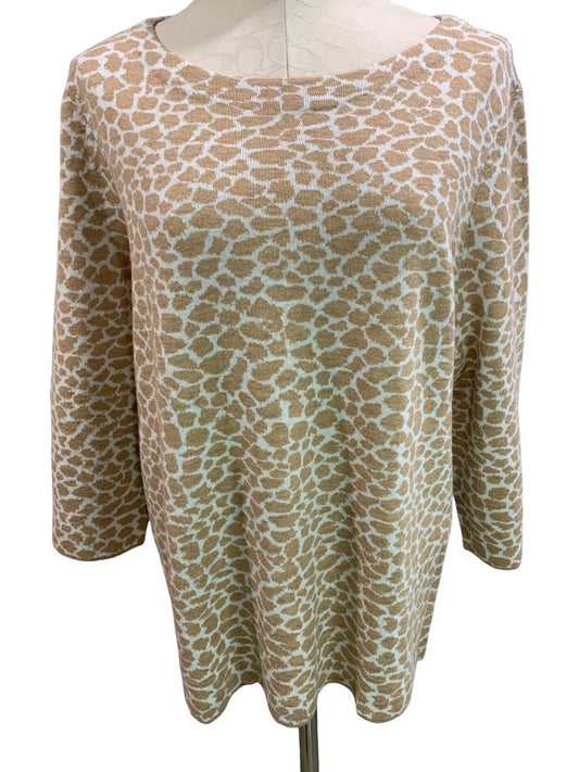 2X Talbots Woman Animal Print 3/4 Sleeve Sweater Merino Wool Cotton Blend