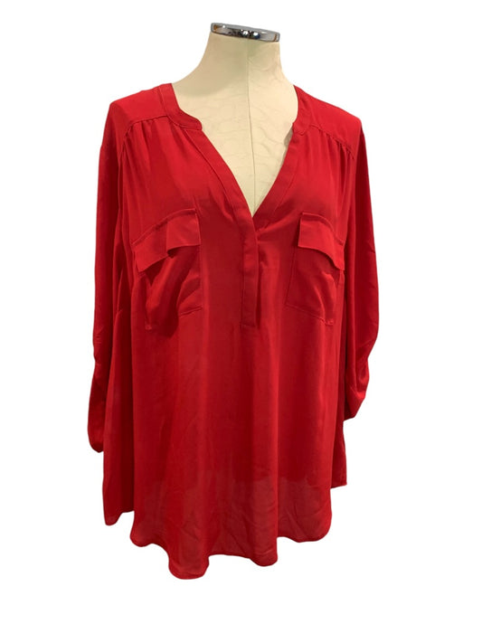 3X Torrid Harper Red Popover Blouse Slightly Sheer Womens Shirt