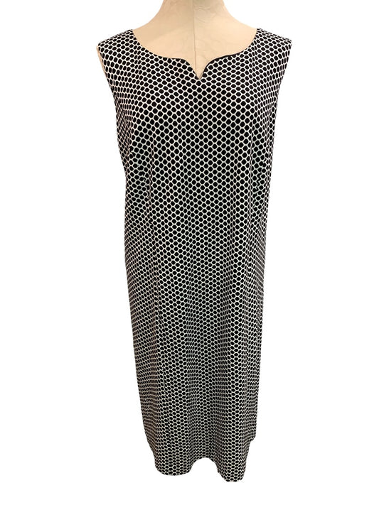 Size 16W Talbots Plus Geometric Print Sheath Dress Ponte Knit Sleeveless Black White