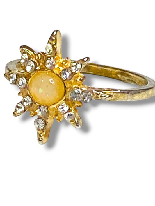 Size 7.5 Goldtone Ring Starburst Design Vintage Goldtone Yellow