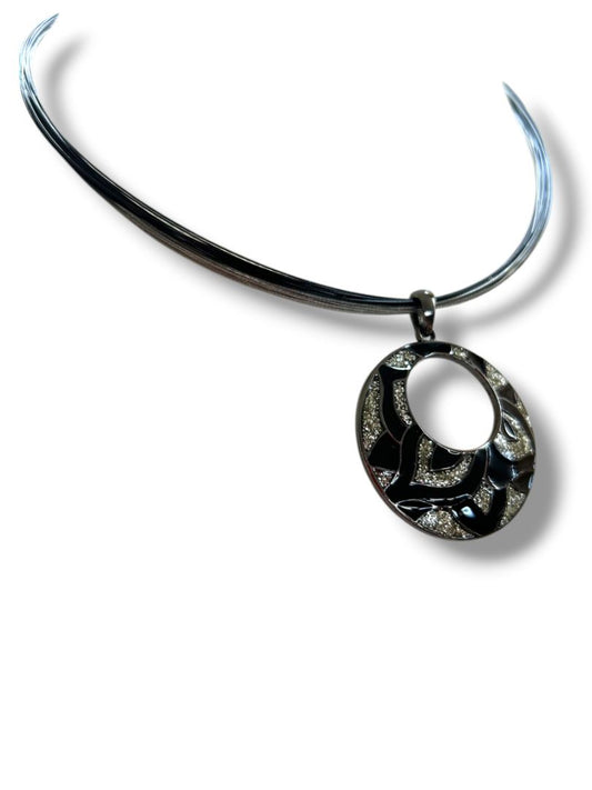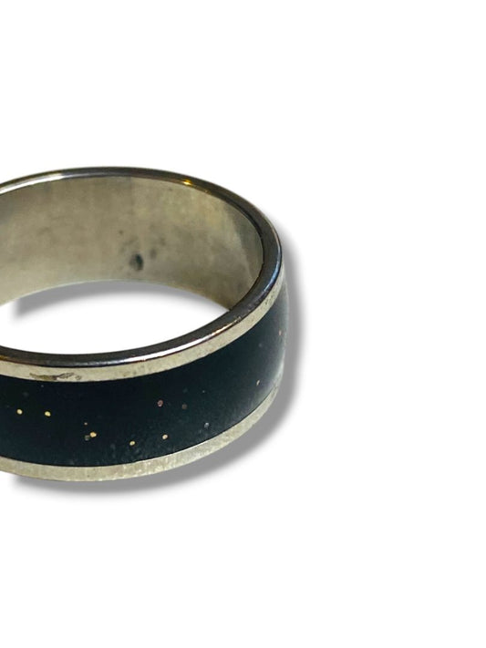 Size 7.5 Silvertone Black Band Ring Enameled Speckled
