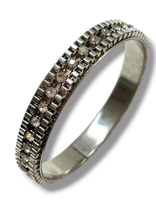 2 Silvertone Bangle Bracelets Rhinestones Detail 2.75" Inside Diameter