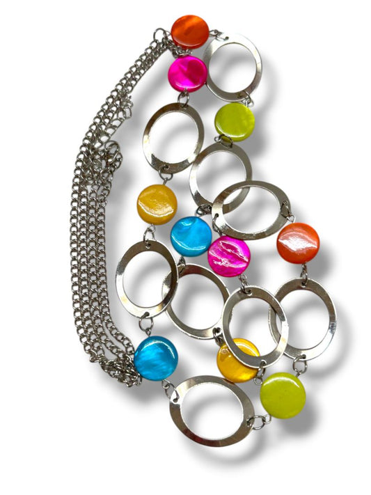 Silvertone and Multicolor Disc Circle Necklace 41-44" Lobster Clasp