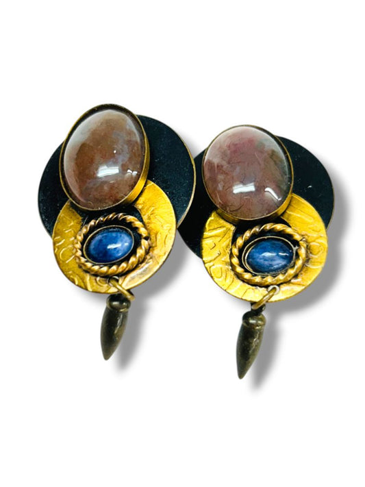 4 Pair Vintage Non-Pierced Clip On Earrings Assorted Styles Colors .75-1.75"