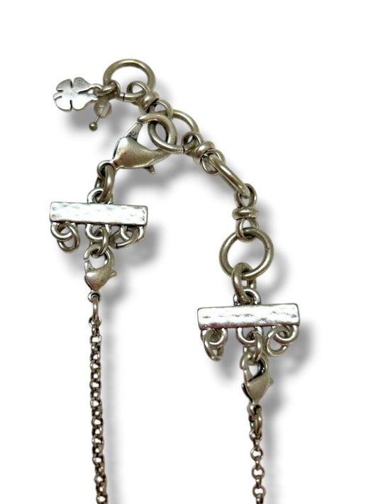 Lucky Brand Silvertone Drop 2 Tier Necklace Blue Pendant Bar 20-22"