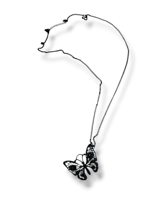Black Butterfly Lasercut Pendant Necklace 30-33"