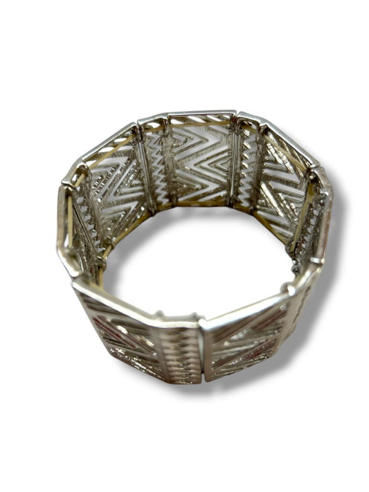 Size 10.5 Silvertone Mens Ring Open Geometric Design Thick Band