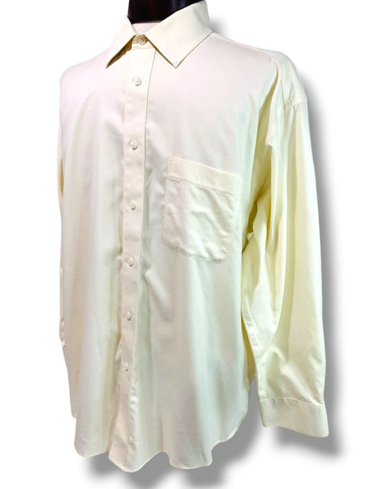17 (32/33) Joseph & Feiss Mens Button Up Dress Shirt Beige Non-Iron 80's 2 Ply