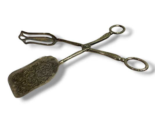 Vintage Silverplate Ornate Dessert Serving Tongs Zinc Alloy 8.5"