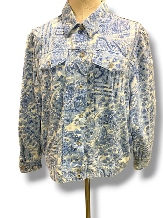 Size 16P Alfred Dunner Petites Womens Blue White Jean Jacket Paisley