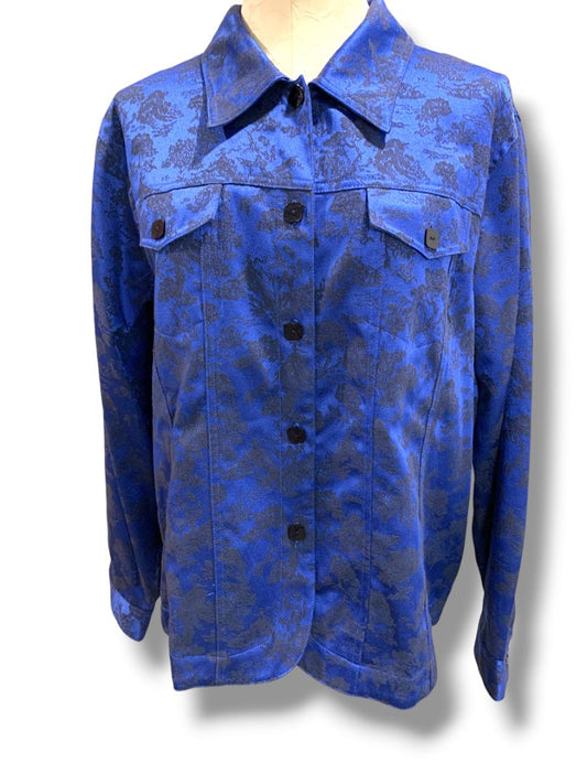 Size XL Susan Graver Womens Blue Black Satin Brocade Jacket