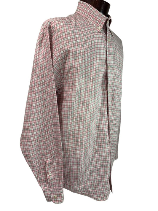 16.5 - 34 Lands End Baird McNutt Mens Irish Linen Button Down Shirt Pink Plaid
