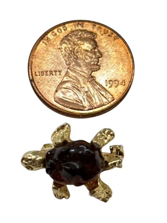 Small Turtle Brooch Goldtone Pin .6 Inch Textured Shell