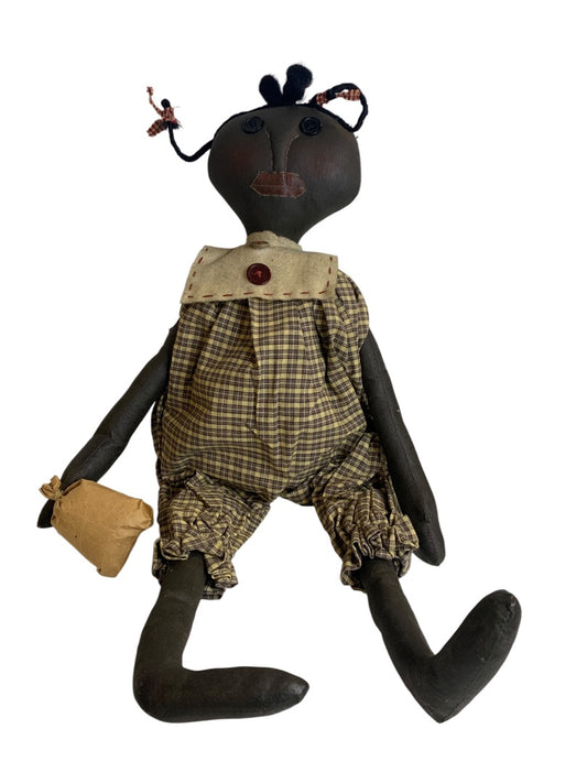 Cloth Doll 20 Inch Girl "Jesse" Primitive Style Painted Gingham Dress