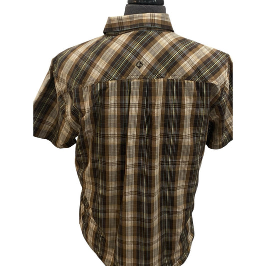 Prana Men Size L Short Sleeve Plaid Shirt Organic Cotton Blend Gorpcore