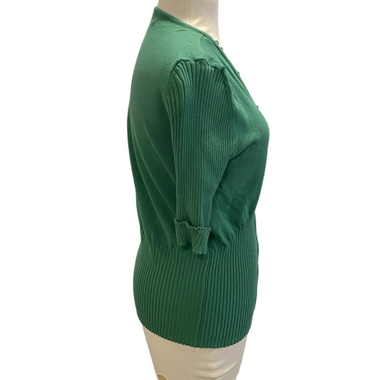Size 2 Green ABC Fashion 3/4 Sleeve Sweater Rhinestone Bling Zipper Preppy Sassy