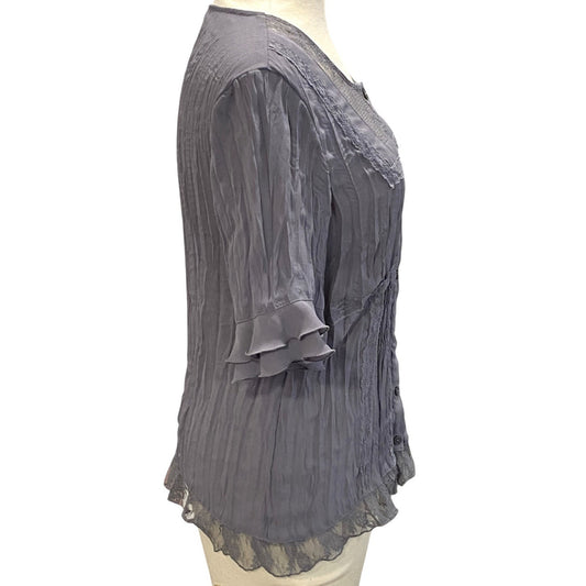 Size M NY Collection Blouse Top Woman’s Grey Cottagecore Fairy Peasant Romantic