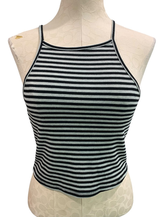 Medium WishList Junior Womens Gray Black Striped Crop Tank Shirt