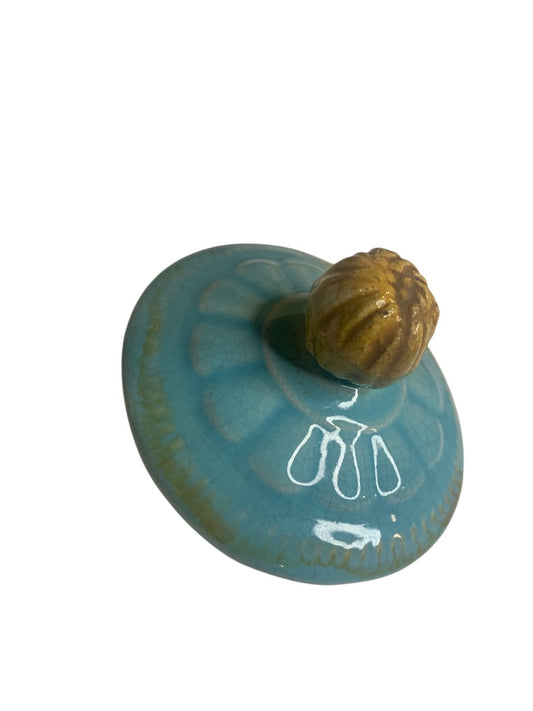Majolica Water Pond Lily Lid 3 Inch Diameter Antique Pottery