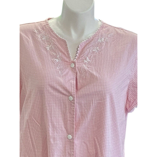 Miss Elaine Size 2X Cotton Check Short Sleeve Snap Front Robe Pink Granny Core