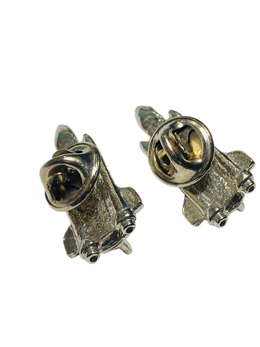 Pair of Vintage Space Shuttle Silvertone Lapel Pins Butterfly Back 1.25"