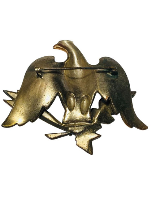 Vintage Patriotic Brooch Pin Eagle Arrows 2.5" Copper Color