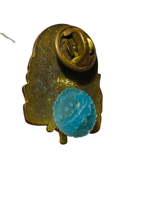 Vintage Bar Pin Organization Blue Goldtone 1.5" Double Butterfly Back