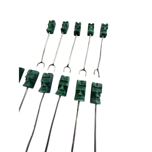 Jade Green Easter Island Hors D'oeuvre Appetizer Cocktail Picks Vintage Tiki 11p