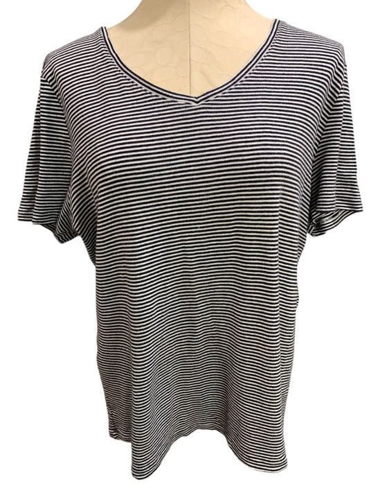 XL Talbots Tee Womens Navy Blue White Striped V-Neck Tshirt
