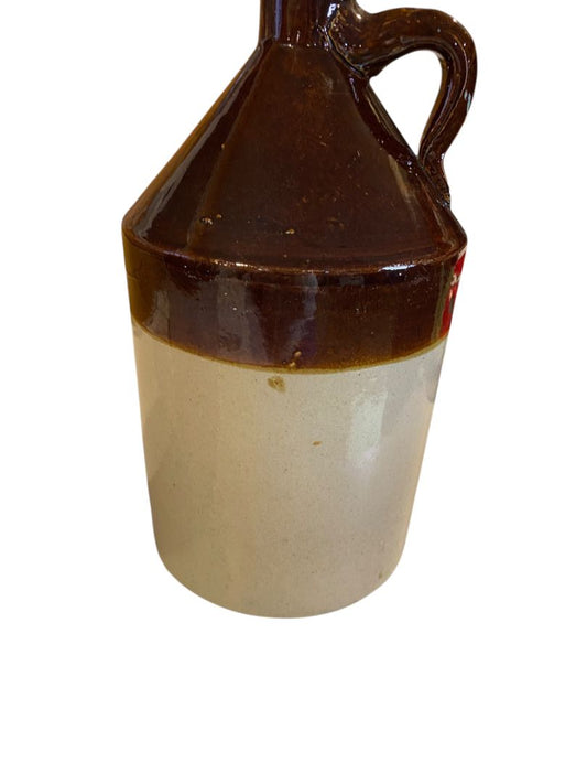 Vintage Stoneware Jug Two Tone Brown Handle Farmhouse Rustic Decor