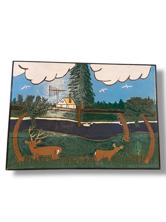 Vintage Carved Wooden Nature Scene Enameled Paint 22" x 16"