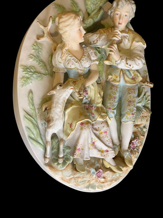 Vintage Arnart Creation Victorian Couple Porcelain Wall Art Hanging Decor