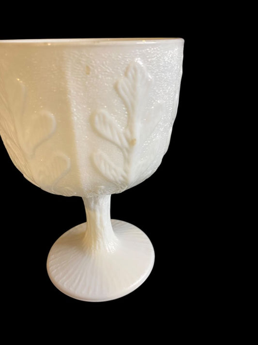 Vintage FTD Milkglass Planter Goblet Embossed Oak 6.5"h