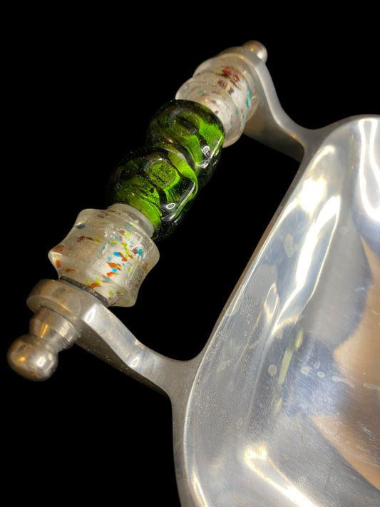 Wild Eye Designs Metal Serving Dish Small Green Bead Handles