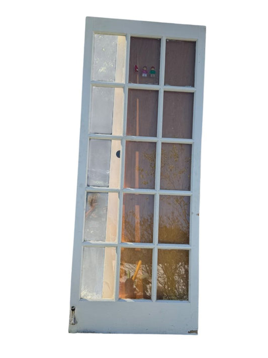 Vintage Interior Door 15 Glass Panes White Door 31.75" x 79.5"