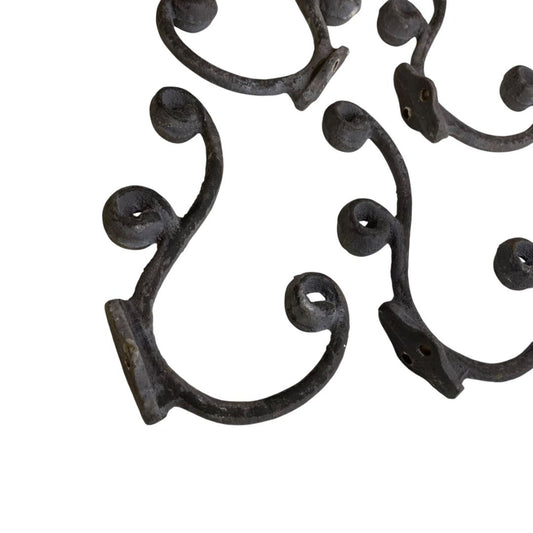 Set of 4 Hat Coat Hooks Vintage Scrolled Design Distressed Wall Hanging