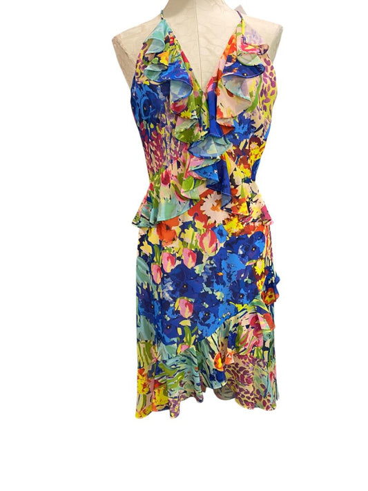 Size 6 Badgley Mischka Belle New Faith Dress Royal Multicolor Floral MSRP $199