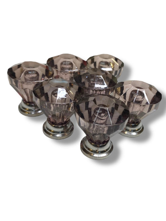 Set of 7 Purple and Silvertone Crystal Knobs Drawer Pulls 25mm 1" New