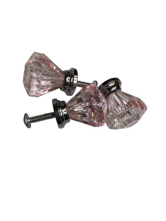 Set of 3 Pink and Silvertone Crystal Knobs Drawer Pulls 25mm 1" New
