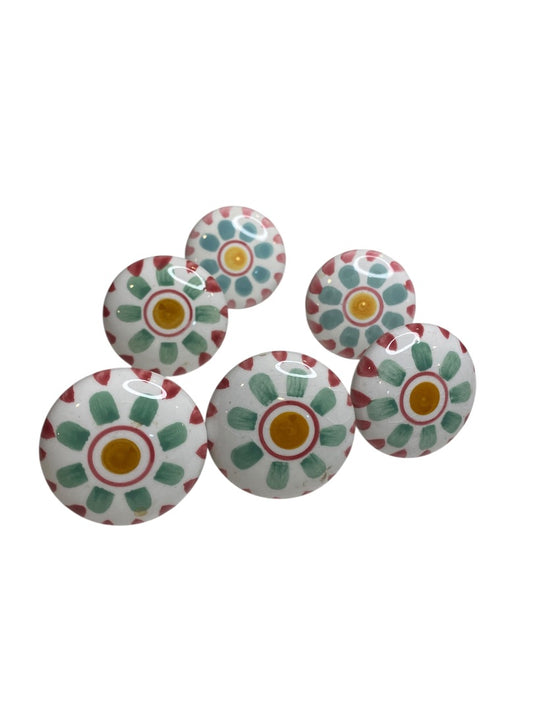 Set of 7 Ceramic Handpainted Drawer Knob Pulls Floral 39mm 1.5"