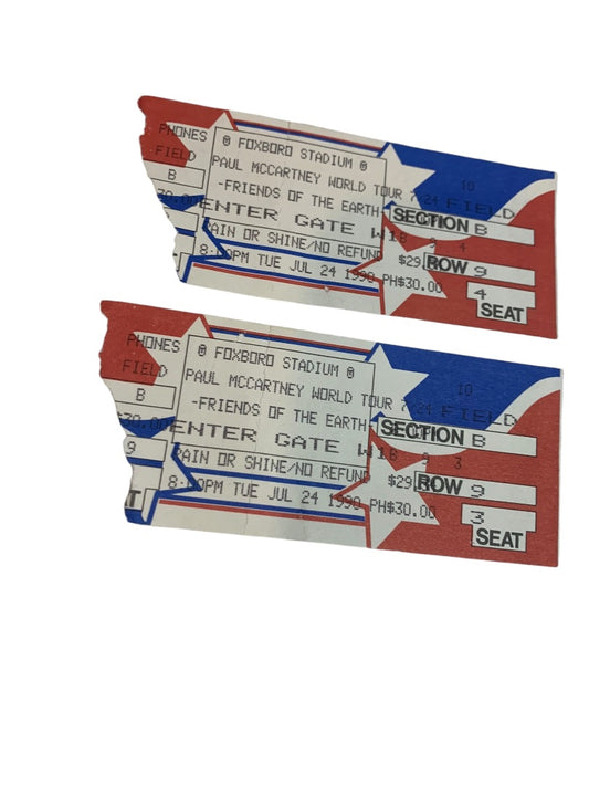 Set of 2 Paul McCartney World Tour Tickets July 24 1990 Foxboro Stadium Friends of the Earth Vintage