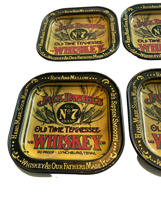 Set of 4 Vintage Metal Jacke Daniels Coasters Old No 7 Logo