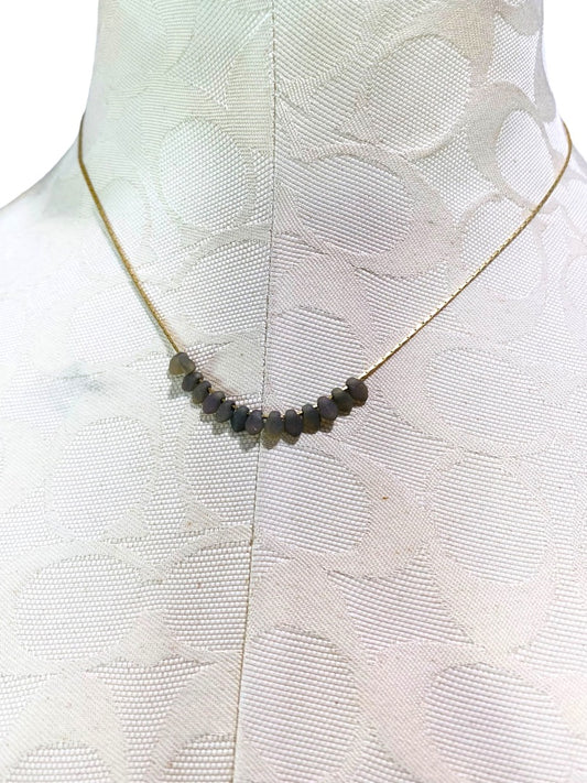 Goldtone and Gray Green Stone Delicate 15" Necklace Spring Clasp
