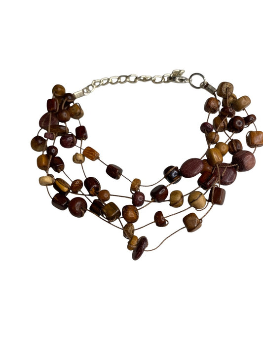 Wooden Beaded String Multistrand Bracelet 8-9" Lobster Clasp
