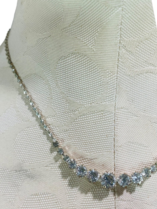 Icing Rhinestone Necklace Silvertone Delicate 16-19" Lobster Clasp